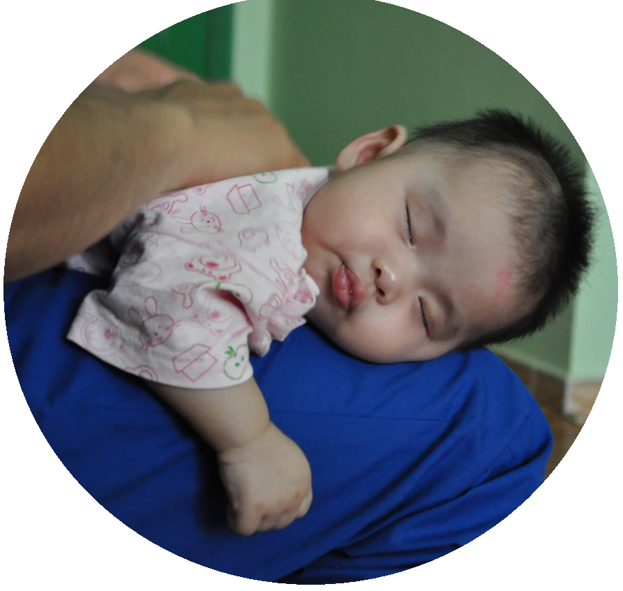 - Khi ngủ, cho trẻ nằm nghiêng, kê gối cao hơn thông thường.