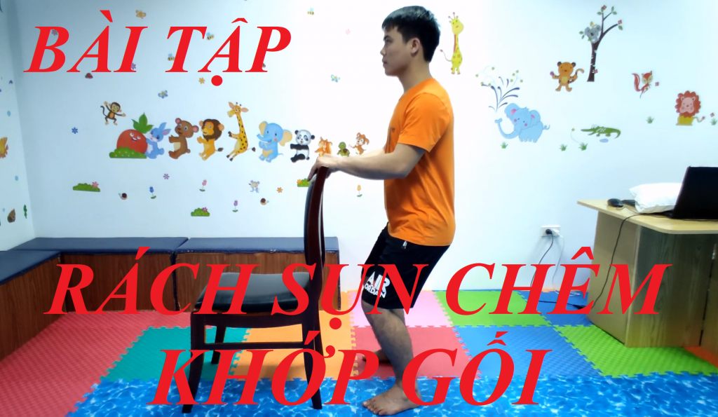 Chỉ tập khi bệnh nhân không đau Bệnh nhân đứng, hai chân dạng rộng bằng vai, hai tay nắm nhẹ vảo ghế tựa phía trước mặt. Sau đó từ từ gấp hai khớp gối như chuẩn bị ngồi xuống ghế, lưu ý không để hai khớp gối đưa ra phía trước các ngón chân của bệnh nhân. Hạ thấp thân mình xuống khoảng 10 – 15 cm vẫn giữ hai gót chân sát trên sàn nhà, giữ ở vị trí đó khoảng 5 giây sau đó từ từ đứng dậy trở về tư thế bắt đầu.