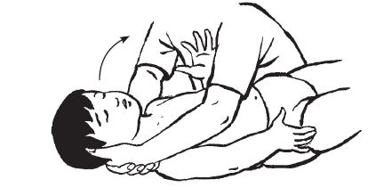 | – Chỉ định: Trẻ bại não chưa lật ngửa sang sấp được. – Kỹ thuật: Đặt trẻ nằm ngửa, chân duỗi; người tập gấp một chân trẻ và nhẹ nhàng đưa chéo qua phía trước sang phía bên kia đến khi trẻ nằm nghiêng, sau đó từ từ đẩy thêm trẻ sang bên đó và đợi trẻ tự lật sấp. – Kết quả mong muốn: Trẻ có thể phối hợp lật nghiêng người từ nằm ngửa sang nằm sấp. |